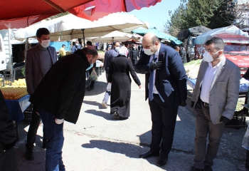 Aziziye Belediyesi zabıta ekipleri ve kolluk kuvvetleri pazar esnafını ve vatandaşların sağlık kontrolü eşliğinde alışveriş yapmalarına olanak sağlıyor. Pazar girişinde ölçüm cihazları ile vatandaşların vücut ısıları kontrol edilip pazara girişleri öyle sağlandı. Ayrıca dezenfeksiyon otomasyonlarının da bulunduğu pazara giderek esnaf ve vatandaşlarla görüşen Başkan Muhammed Cevdet Orhan’da semt pazarında maske dağıtımı yapıp esnaf ve vatandaşlarla sohbet edip moral verdi. Cumhurbaşkanlığı ve Sağlık Bakanlığı tarafından yapılan kararlı uygulamalar sayesinde son günlerde vaka sayısı oranlarının düşüşe geçtiğini hatırlatan Başkan Orhan, yerel yönetimler olarak bu uygulamalara katkı sunduklarını söyledi. Aziziye ilçe sınırları içinde 20 bini aşkın konut ve işyerlerinin ilaçlamasının sürekli olarak devam ettirildiğine dikkat çeken Başkan Orhan, “İlçe halkımızın sağlığının maksimum düzeyde korunmasına yönelik çalışmalarımız devam etmektedir. Tüm bunlarla birlikte eğitim kurumlarımız ve ibadethanelerin ilaçlanması tamamlanmıştır. 65 yaş üstü vatandaşlarımızın da adeta eli ayağı olduk. Tüm talepleri kurduğumuz ekipler tarafından karşılanmaktadır. Son olarak semt pazarlarında da sağlık koşullarının olumsuzluk arz etmemesi için zabıta ekiplerimiz ve kolluk kuvvetlerimiz ile canhıraş çaba sarf ediyoruz. Salgınların tarihe geçeceği günler yakındır. Vatandaşlarımızın büyük ölçüde yasaklar ve uyarılar konusunda duyarlılığı bizleri mutlu etmektedir” diye konuştu.