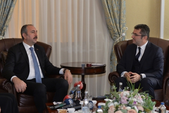 Bakan Gül, beraberindeki heyetle birlikte Vali Memiş'i makamında ziyaret etti. Valilik Şeref Defterini imzalayan Gül, ardından Vali Memiş'ten kentteki çalışmalar hakkında bilgi aldı.