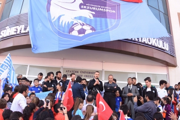 BB Erzurumspor'u coşkuyla karşılayan öğrenciler futbolcularla fotoğraf çekilmek için birbirleriyle yarıştı. Futbolcular yanlarında forma getiren minikleri kırmayarak formaları da imzaladı.