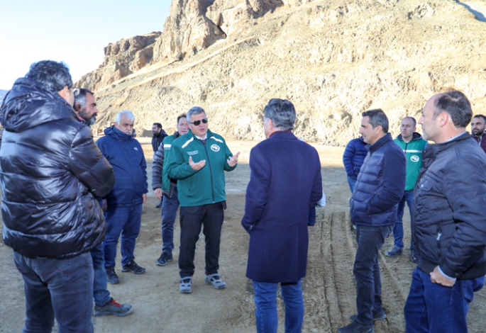 Daha sonra heyetle birlikte Baraj gövde dolgusunda kullanılan malzeme ocaklarında ve Baraj gövdesinde incelemelerde bulundu.