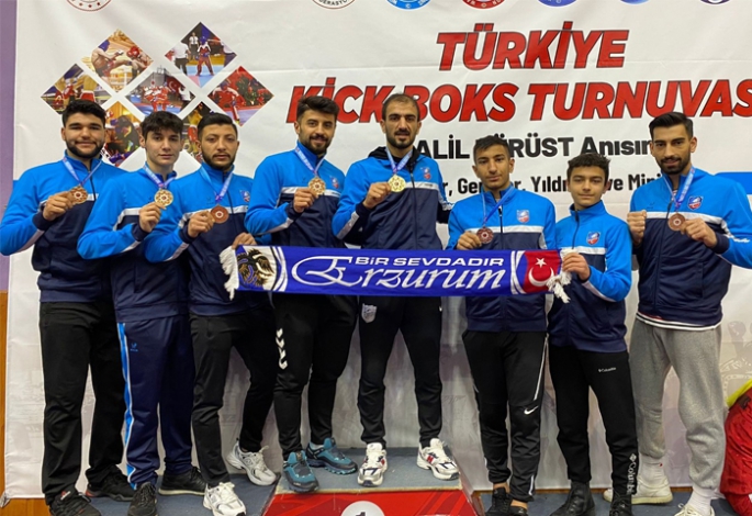 Erzurum Büyükşehir Belediyesi Gençlik ve Spor Kulübü’nün sporcuları Ordu ilinde yapılan Türkiye Şampiyonası’nda adeta destan yazdı. Büyükşehir’in altın yumrukları, Türkiye Şampiyonası’nda 4 altın, 1 gümüş ve 2 de bronz madalya kazandı. Yaklaşık 3200 sporcunun mücadele ettiği şampiyonada, Gençlik ve Spor Kulübü’nün sporcuları Cebrail Gençoğlu büyükler kategorisinde 63 kilogramda Kick Light branşında, Emre Şahin büyükler kategorisinde 57 kilogramda Kick Light branşında, Hakan Koç büyükler kategorisinde 84 kilogramda Kick Light branşında ve Muhammet Enes Yanmaz gençler kategorisinde 69 kilogramda Kick Light branşında ‘Türkiye Şampiyonu’ oldu. Nefes kesen mücadelede Muhammet Emin Alkan gençler kategorisinde Türkiye ikincisi olurken Vedat Ağyürek ve Muhammet İkbal Cömert de büyüklerde bronz madalya kazandı. Erzurum Büyükşehir Belediye Başkanı Mehmet Sekmen, şampiyonları tek tek kutlayarak, “Kick boks’ta şehrimize bu gururu yaşatan altın eldivenlere teşekkür ediyorum. Bilindiği gibi bu branşta Cebrail Gençoğlu kardeşimizle Dünya Şampiyonluğu elde etmiştik. İnşallah hedefimiz bundan sonra da Avrupa ve Dünya şampiyonalarında sürekli ay yıldızlı bayrağımızı göndere çekmek ve bu branşta yeni Dünya Şampiyonları ve yeni yıldızlar yetiştirmektir” dedi.