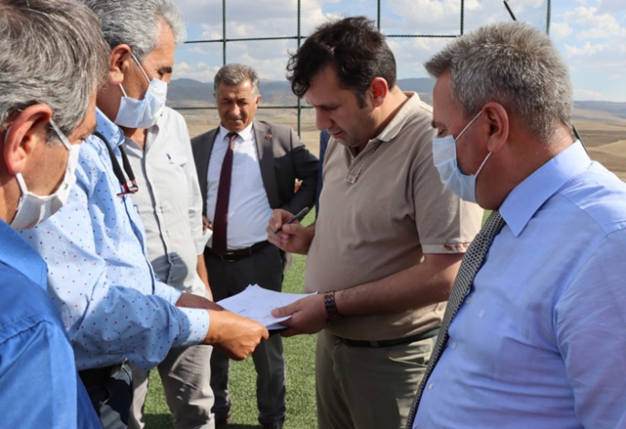 Gençlik ve Spor İl Müdürü Fuat Taşkesenligil, Tesisler Şube Müdürü Köksal Kaçmaz’ın yanı sıra Çat İlçe Müdürü İkram Sönmez, Çat Belediye Başkanı Melik Yaşar, AK Parti İlçe Başkanı Muhammed Emin Işık ve AK Parti Belediye Meclisi Üyesi Haydar Bulut’la birlikte Çat İlçe Sentetik Sahasında incelemelerde bulundu.