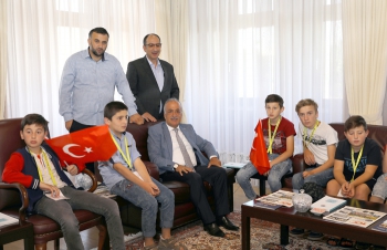 Atatürk Üniversitesi Oltu Havzası Araştırma ve Uygulama Merkezi Uluslararası Yaz Okulu kapsamında 40 misafir öğrenci, Atatürk Üniversitesi Rektörü Prof. Dr. Ömer Çomaklı’yı makamında ziyaret etti.