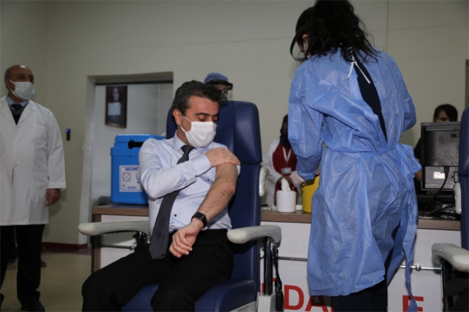Erzurum'da, Covid-19 aşılama çalışmalarına sabah saatlerinde başlandı. Aşıyı ilk yaptıran İl Sağlık Müdürü Dr. Gürsel Bedir, kent genelinde 14 bin 500 sağlık çalışanının aşılanacağını söyledi.