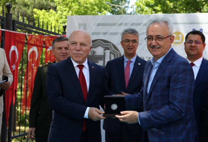 Erzurum Büyükşehir Belediye Başkanı Mehmet Sekmen de, “Tarih boyunca medeniyetlerin kavşak noktası olan Erzurum’umuzda bugün bir ilki, bir tarihi ana daha şahitlik ediyoruz. Ecdat yadigârı ulu mabedimiz; kadim inancımızın, direnişin ve dirilişin timsali olan Erzurum Ulu Camii’mizin hatıra parasıyla manevi değerinin tescillenmesinin gururunu yaşıyoruz” dedi. “Bu şehir, yalnızca taşla, toprakla değil; imanla, ilimle, irfanla yoğrulmuş bir ruhun taşıyıcısıdır” diyen Başkan Sekmen, şunları ifade etti: “Ulu Camii ise bu ruhun kalbidir. İşte bugün burada, Darphane ve Damga Matbaası Genel Müdürlüğü’müzün, Valiliğimizin ve Büyükşehir Belediyemizin müşterek çalışmaları neticesinde, bu ulu mabedin manevi ve mimari ihtişamını bir hatıra para ile gelecek nesillere aktarıyoruz. Bu anlamlı eserde emeği geçen herkesi yürekten tebrik ediyorum. Bu vesileyle bir kez daha ifade etmek isterim ki, bir şehrin hafızası camilerle, medreselerle, türbelerle kurulur. Hatıra paralar ise sadece birer metal parçası değil, hafızamızın simgesel mühürleridir. Bugün tanıtımını yaptığımız bu eser, Erzurum’un sadece taşını toprağını değil, ruhunu da mühürleyen bir kıymettir. Bir milleti ayakta tutan şey, geçmişine olan sadakati, mukaddeslerine duyduğu hürmeti, kadim değerlerine gösterdiği vefadır. Erzurum, bu sadakatin ve vefanın adıdır. Ulu Camii’nin gölgesinde şekillenen o ruh, bugün hâlâ canlıdır, dipdiri ayaktadır. Erzurum; kararlarıyla tarihe damga vuran bir şehirdir. Dönemin imkânsızlıklarına rağmen bu şehirde toplanan yürekli ecdadımızın, istiklal mücadelesine harç koyduğu o kutlu kongre; işte bu toprakların bağrından çıkmıştır. Bizler bugün hem Erzurum’un manevi mirasını yaşatıyor, hem de tarihten aldığımız güçle geleceğe yürüyoruz. Erzurum artık sadece Anadolu’nun doğusunda bir şehir değil; uluslararası kültürel ve ekonomik iş birliklerinin, stratejik buluşmaların, vizyoner açılımların da merkezidir. Çünkü biz biliyoruz ki, geçmişine sahip çıkmayan bir millet, geleceğini inşa edemez. Erzurum Ulu Camii Hatıra Parası da işte bu kökün bir halkasıdır. Bir dua, bir saygı, bir ahde vefanın nişanesidir.” Konuşmaların ardından Erzurum Hatıra Parası protokol üyelerine hediye edildi.
