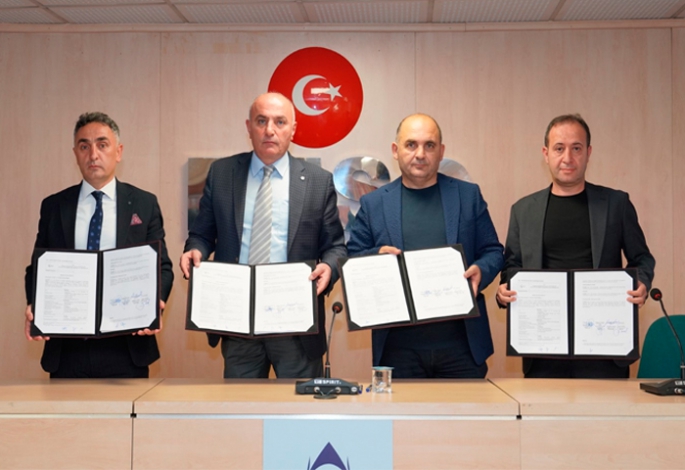 ETSO Yönetim Kurulu Başkanı ve TOBB Yönetim Kurulu Üyesi Saim Özakalın, İŞKUR İl Müdürü Abdulkadir Mutlu, ETSO Meclis Başkanı Gökhan Yılmaz ve Doğu Anadolu Sigorta Acenteleri Derneği Başkanı Serkan Daş protokolü katılımcıların huzurunda imzaladılar.