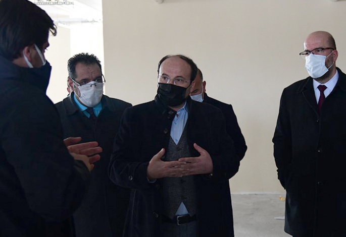 Yapımı devam eden camide incelemelerde bulunan Prof. Dr. Bülent Çakmak’a Rektör Yardımcıları Prof. Dr. Birol Soysal, Prof. Dr. İrfan Kaymaz ve Genel Sekreter Doç. Dr. Tuba Yetim eşlik etti.