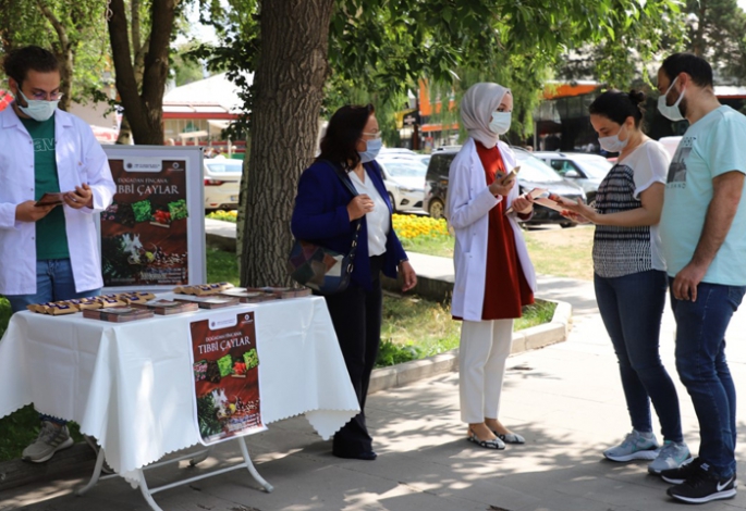 Tıbbi Aromatik Bitki ve İlaç Araştırma Merkezi Müdürü Prof. Dr. Zühal Güvenalp danışmanlığında yürütülen ve Toplumsal Duyarlılık Projeleri Uygulama ve Araştırma Merkezi tarafından desteklenen projede Eczacılık Fakültesi öğrencileri tarafından aromatik bitkilerden hazırlanan tıbbi çaylar ikram edildi.