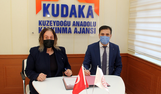 Kuzeydoğu Anadolu Kalkınma Ajansı hizmet binasında gerçekleşen imza törenine; KUDAKA Genel Sekreteri Oktay Güven, Kadama Kadın Kooperatifi Yönetim Kurulu Başkanı Fatma Canan Uçar ile kooperatif kurucu ortağı Ferda Turan katıldı.