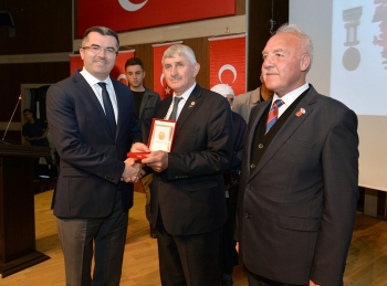 Konuşmaların ardından Vali Okay Memiş ve protokol üyeleri gazilerin madalyalarını taktim etti.