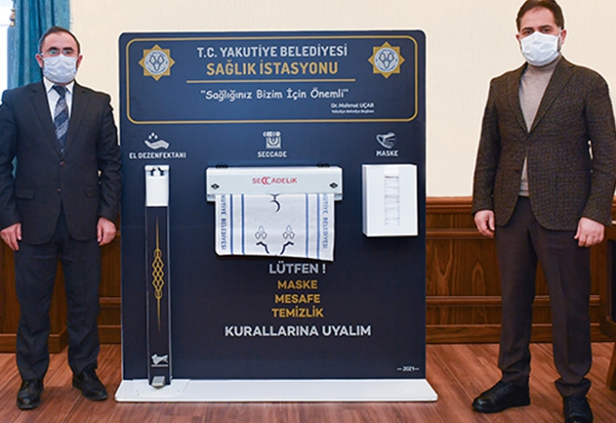 Yakutiye Belediyesi koronavirüsle mücadele kapsamında ilçe merkezindeki camilerde kullanılmak üzere “Sağlık İstasyonu Ünitesi” tasarladı. Üzerinde tek kullanımlık seccade, maske ve dezenfektan bulunan ve özgün bir tasarıma sahip olan Sağlık İstasyonu Üniteleri camilere konularak vatandaşın hizmetine sunuldu.