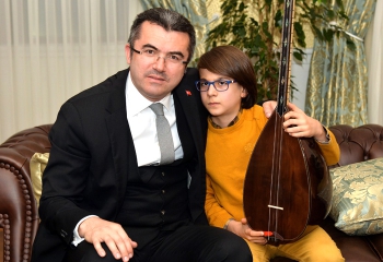 Bağlamasıyla birlikte Erzurum Valisi Okay Memiş’i makamında ziyaret eden İlkokul 4. Sınıf Öğrencisi Bedirhan Aziz Aydın, (9) mesai sonrası verdiği mini konserle hoş saatler yaşattı.