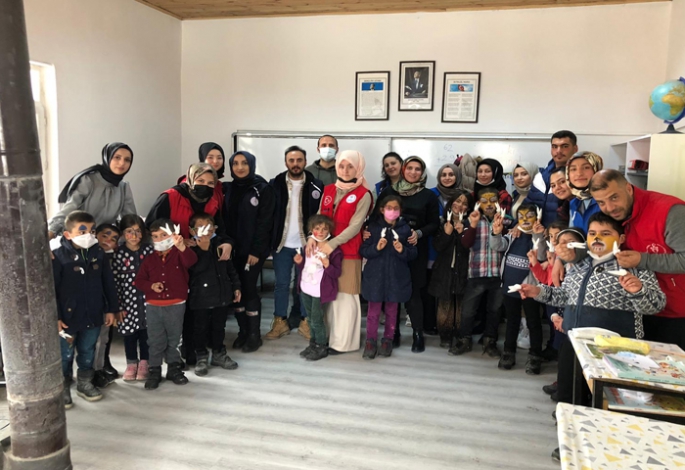 Kümbet İlköğretim Okulu’nda eğitim ve öğrenim gören minik çocuklarla bir araya gelerek onlara eğlenceli anlar yaşatan gençlik liderleri ve gönüllü gençler, çocuklara diş fırçası diş macunu ve kırtasiye malzemesi hediye etti.