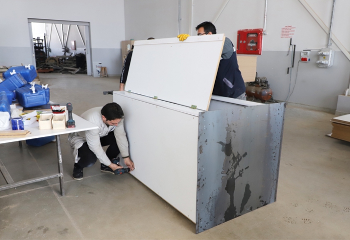 Erzurum’da bulunan hayırsever kişi, kurum ve kuruluşların da desteğiyle, tamamı Atatürk Üniversitesi atölyelerinde üretilen ve içerisinde elektrik ile su tesisatı da bulunan seyyar tuvaletler, deprem bölgesine yine Atatürk Üniversitesi tarafından ulaştırılıyor.
