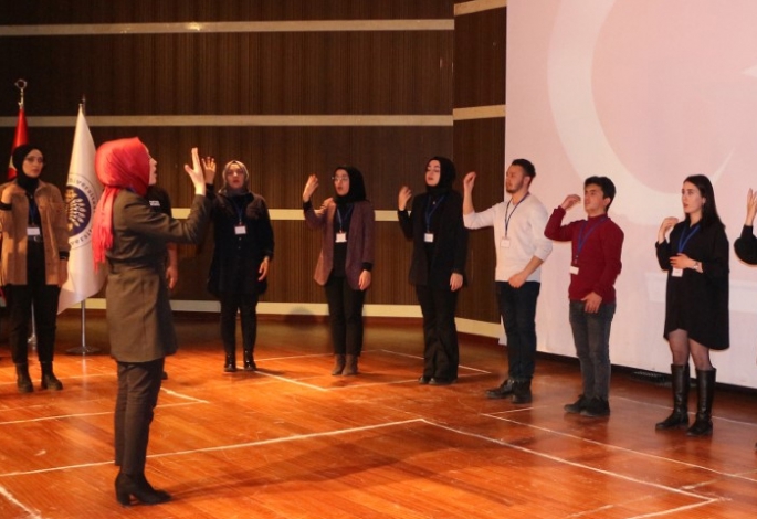 İşaret dili eşliğinde İstiklal Marşı’nın okunmasıyla başlayan etkinliğin açılış konuşmasını yapan Özel Eğitim Bölüm Başkanı Dr. Öğr. Üyesi Gamze Ardır, özel bireyler hakkında bilgiler verdikten sonra herkesten çevresi ve kendisi için bir şeyleri değiştirmeye yönelik söz vermelerini istedi. Ardır: “Özel bireylerin sayısı hiç de az değil, bu özel bireyler hâlâ toplum tarafında değişik yargılarla örseleniyorlar. Bu etkinlik; davranışlarımızı, tutumlarımızı ve beklentilerimizi değiştirebilmeye vesile olsun. Bunun için sizlerden söz istiyorum” dedi.