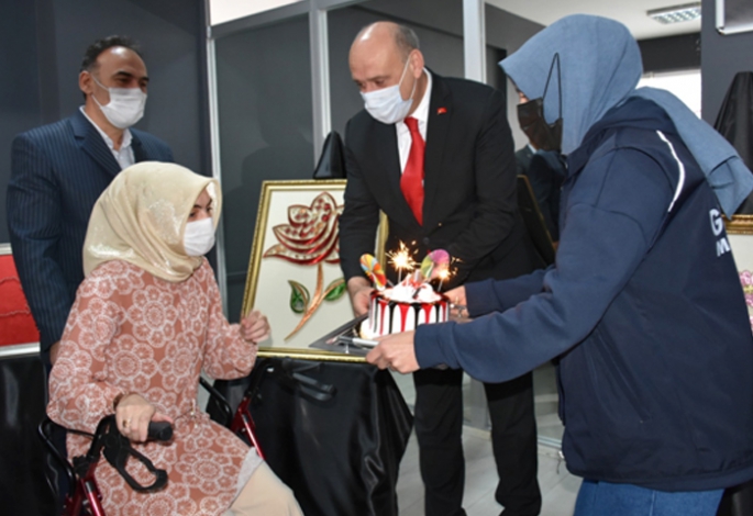 Senanur Çelebi’nin doğum günün de 24 Kasım olmasından dolayı sergi salonunda pasta kesildi ve kendisine hediye takdim edildi.