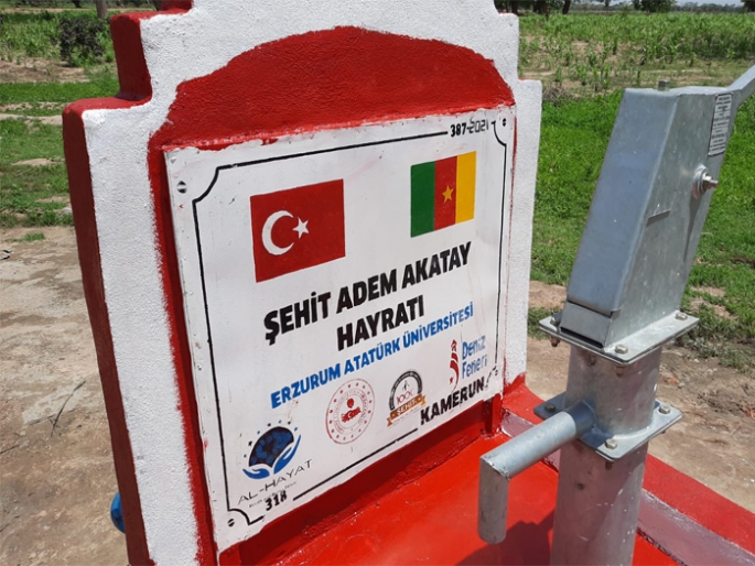 Deniz Feneri Derneğinin başlatmış olduğu “1000 Şehidimiz İçin 1000 Su Kuyumuz” projesi kapsamında Atatürk Üniversitesinin desteğiyle Kamerun’da açılan su kuyusuna Şehit Adem Akatay’ın adı verildi.