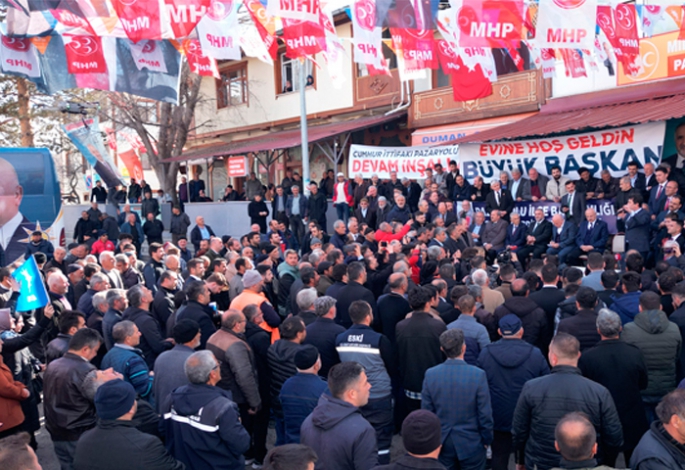 Pazaryolu’nda temas ve incelemelerde de bulunan Başkan Mehmet Sekmen, beraberindekilerle AK Parti Seçim Koordinasyon Merkezi’nin açılışını yaptı, muhtarlarla istişare toplantısı düzenledi. İlçe merkezinde adeta miting yapan Başkan Sekmen, şunları kaydetti: “Nasip olursa yeni dönemimizde ilçemizde eksik olan projelerimizi tamamlayacağız. Belediyecilik bir ekip işidir, belediyecilik bir yürek işidir. Tecrübe olmazsa başarılı olamazsınız. Biz 30 yılı aşkın bir süredir yerel yönetimlerde yapılamayacak denilen işleri tek tek yaptık, mega projeleri hayata geçirdik. Hizmet sevdamız hiçbir zaman eksik olmadı. Erzurum’da 10 yılda nice eserleri vatandaşlarımızın, aziz Erzurumluların emrine sunduk. Bugün bu aziz kente kim gelirse gelsin gözlerine inanamıyor. Bunu sizlerin bizlere olan dua ve desteğiyle başardık. Önümüzde yeni bir süreç var. Cumhur İttifakımız, AK Parti’miz yıllara vesair olan tecrübesiyle inşallah Erzurum’u şaha kaldıracak. Tecrübe desen biz de birikim desen biz de… İnşallah var gücümüzle üçüncü dönemimizde de dev eserleri tek tek hayata geçirmeye nasip olursa devam edeceğiz.”