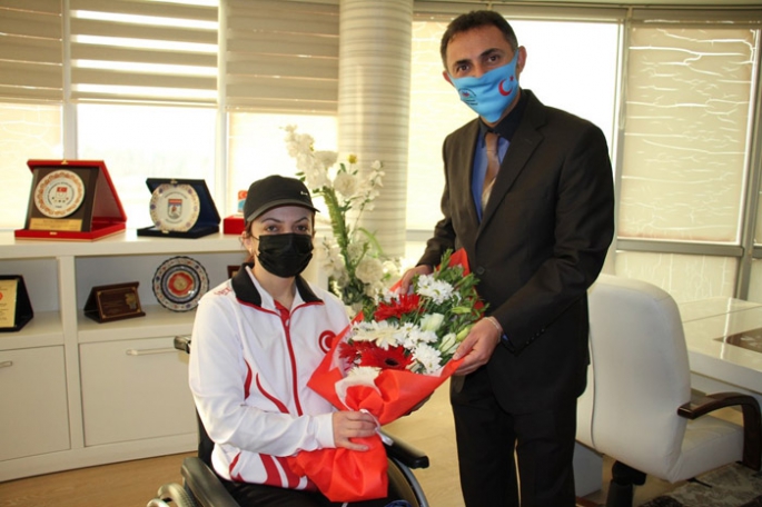 Sporculara çecik ve hediyeler veren Gençlik Hizmetleri Müdürü Muammer Aydın, Tekerlekli Sandalye Basketbol takımı oyuncuları ve Curlingçi Züleyha Bingöl’ü başarılarından ötürü kutladı. Tekerlekli sandalye üzerinde tüm engelleri aşarak spora hizmet eden yürekli sporcuları tebrik eden Aydın, dünyanın pandemi sürecinden kurtulduktan sonra spor salonlarının ve sahalarının yine cıvıl cıvıl bir görünüme kavuşacağına inandıklarını söyledi.