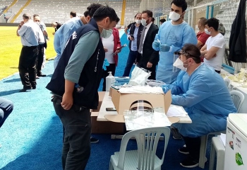 TFF Sağlık Kurulu’nun futbola dönüş protokolü kapsamında TFF ve Sağlık İl Müdürlüğü’nün ortaklaşa çalışması sonucu Kazım Karabekir Stadı’nda Erzurumspor-Eskişehirspor maçında görev alacak olan GSİM çalışanları için Covid-19 testi yapıldı.