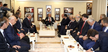Erzurum Büyükşehir Belediye Başkanı Mehmet Sekmen, Türkiye Büyük Millet Meclisi (TBMM) Başkanı Prof. Dr. Mustafa Şentop’u makamında ağırladı. Başkan Sekmen, konuğunu; “Milli iradenin sembolü olan ve Cumhuriyet’i kuran şehre hoş geldiniz!” diyerek karşıladı. Erzurum Kongresi’nin 100’üncü yıl dönümü etkinliklerine katılmak üzere Erzurum’a gelen TBMM Başkanı Mustafa Şentop, Büyükşehir Belediye Başkanı Mehmet Sekmen’i makamında ziyaret etti. Bürokratlar ve daire başkanlarının da hazır bulunduğu görüşmede Şentop, Erzurum’un tarihsel süreç içerisinde üstlendiği misyona vurgu yaptı. Erzurum’un Anadolu’nun en sağlam kalelerinden birisi olduğunu ifade eden TBMM Başkanı, “İşte bu sağlam kalede bundan tam 100 yıl önce toplanan Erzurum Kongresi, Cumhuriyet’e giden yolu açmıştır” ifadesini kullandı.