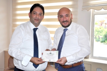 Daha sonra Erzurum Ticaret Borsası Gıda Kontrol Laboratuvarı, Yönetim ve Meclis Salonu ile Konferans Salonu’nu da ziyaret eden, TOBB Yönetim Kurulu üyesi ve Aydın Ticaret Odası Başkanı Hakan Ülken’e, ziyaretinin anısına, Erzurum Ticaret Borsası Yönetim Kurulu Başkanı Hakan Oral tarafından, Erzurum Ticaret Borsası logolu Bakır işlemeli plaket ve Fidan Dikimi sertifikası takdim edildi.