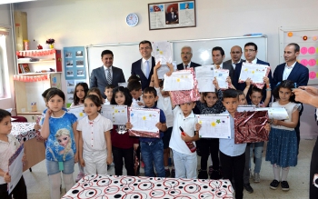Daha sonra okuldaki sınıflara giren Vali Memiş, Milli Eğitim Müdürü Salih Kaygusuz'la birlikte öğrencilere karne dağıttı. İlk kez karne alan birinci sınıf öğrencileriyle sohbet eden Vali Memiş, tatilde parklarda oynamalarını araçlara dikkat etmelerini istedi. Başarılı öğrencileri tebrik ederek karneleriyle birlikte hediyelerini de veren Vali Memiş, tatilde kitap okumalarını tavsiye etti.