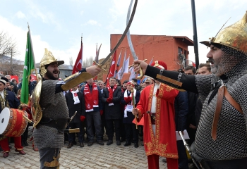 Büyükşehir Belediyesi Mehteran Takımı'nın gösterisi ile başlayan tören, dönemin kıyafetlerini giymiş askerler tarafından Bardız Köyü Cami minaresine 105 yıl önce olduğu gibi 85'inci alay sancağı çekilerek ezan okunup saygı atışı yapılmasıyla devam etti.
