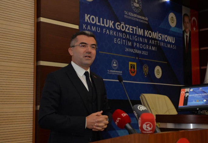 Erzurum’da “Kolluk Gözetim Komisyonu Hakkında Kamu Farkındalığının Arttırılması Toplantısı” düzenlendi. Vali Okay Memiş, kolluk kuvvetlerinin sorumluluklarına çok dikkat etmesi ve vatandaşlara iyi davranması gerektiğini belirtti.