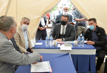 Erzurum Valisi Okay Memiş, kaymakamlık önünde kurulan çadırları ziyaret ederek, vatandaşların taleplerini dinledi.