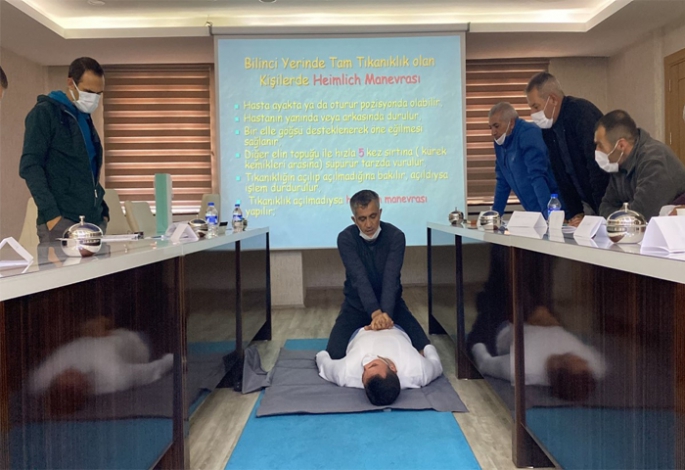 Yakutiye Belediyesi ve Erzurum Sağlık İl Müdürlüğü işbirliği ile İş Sağlığı ve Güvenliği kapsamında Yakutiye Belediyesi çalışanlarına ilk yardım eğitimi verildi.