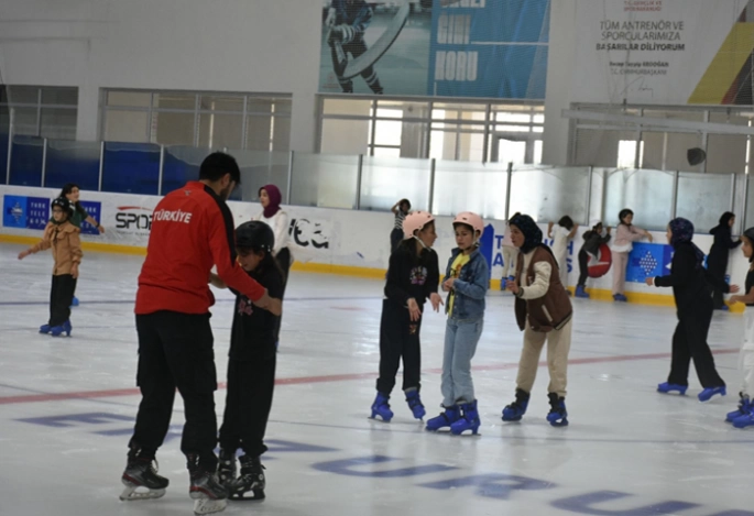 Erzurum Gençlik ve Spor İl Müdürlüğü Yaz Kur’an Kursları’nda Kur’an öğrenen öğrencileri buz pateni ile tanıştırdı.